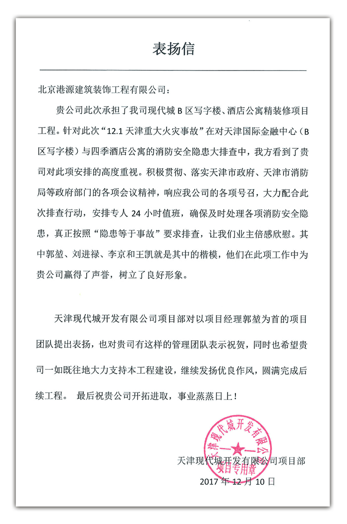 該項(xiàng)目由美國(guó)知名設(shè)計(jì)公司設(shè)計(jì),是一個(gè)集超大國(guó)際購(gòu)物中心、世界豪華五星級(jí)酒店、精裝酒店式公寓、白金甲級(jí)寫字樓及大型屋頂花園于一體的街區(qū)式城市綜合體。港源裝飾負(fù)責(zé)該項(xiàng)目寫字樓、四季酒店公寓的室內(nèi)精裝修工程,作業(yè)面積達(dá)50000㎡,本工程以甲A級(jí)寫字樓、高檔酒店式公寓標(biāo)準(zhǔn)進(jìn)行施工,所有作業(yè)及驗(yàn)收檢測(cè)均按照高級(jí)裝修標(biāo)準(zhǔn)要求完成。