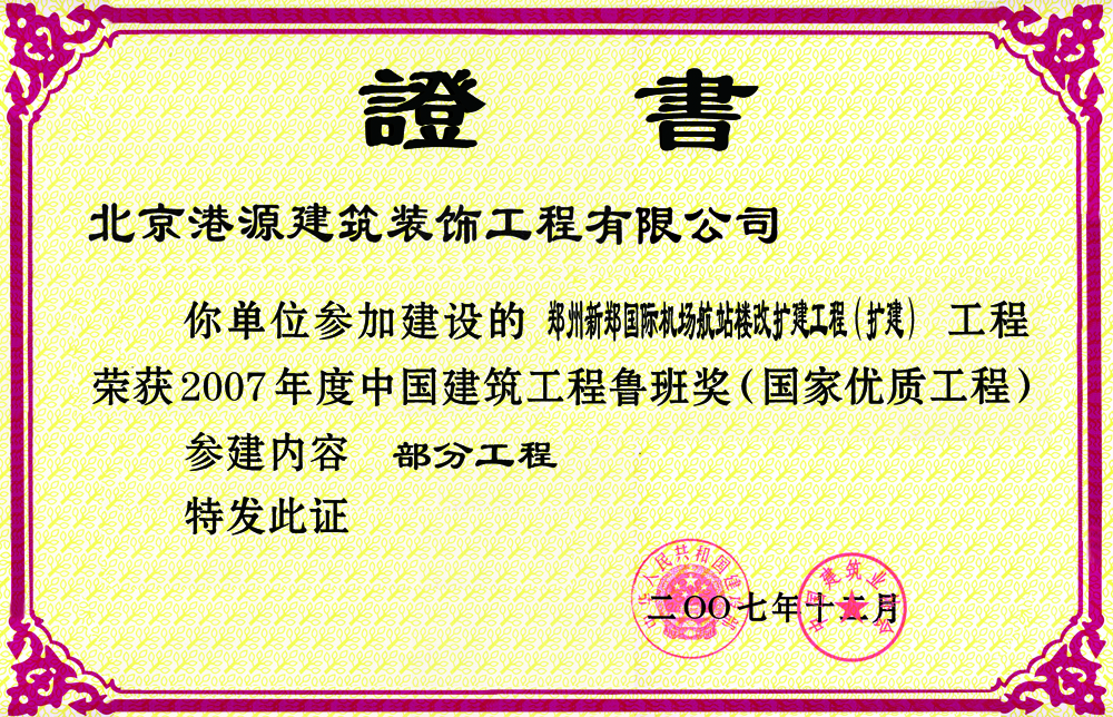 魯班獎——鄭州新鄭國際機場航站樓改擴建