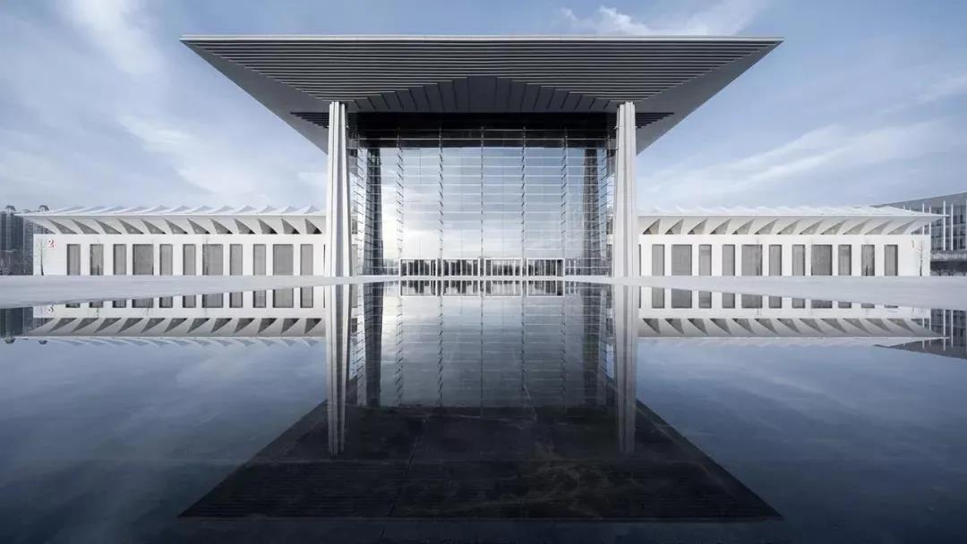 ▲港源施工區(qū)域——會展中心展覽館公共廣場(中央水景、硬質(zhì)景觀)