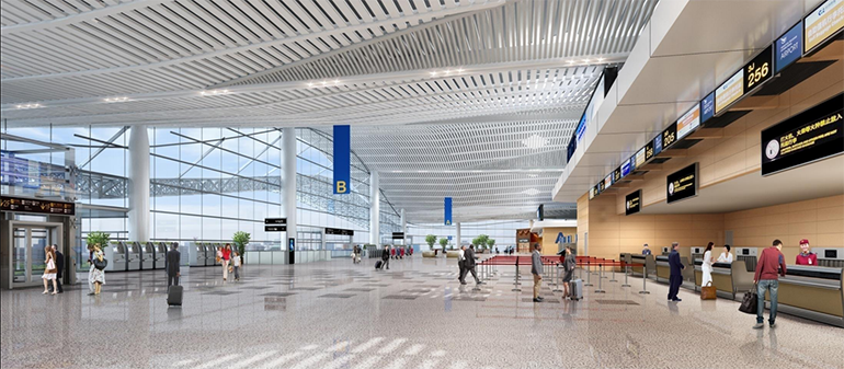 港源裝飾在本項目中負(fù)責(zé)航站樓一層行李提取大廳、遠(yuǎn)機位候機廳、行李提取廳、貴賓室及二層候機廳、商業(yè)區(qū)等功能區(qū)域的精裝修工程。