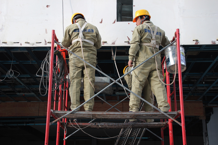 走進(jìn)北京城市副中心的施工現(xiàn)場,“井然有序、整齊嚴(yán)謹(jǐn)”是給人留下的第一印象。據(jù)了解,項(xiàng)目部對于安全文明施工的要求極其嚴(yán)格:所有施工人員必須經(jīng)過三級教育且考試通過,還要拿到體驗(yàn)培訓(xùn)的“通過卡”后才有資格進(jìn)入現(xiàn)場進(jìn)行施工;施工現(xiàn)場必須保證不能有垃圾灰塵;每道工序都必須自檢合格并通過監(jiān)理方認(rèn)可后方可進(jìn)入下一階段。此外,項(xiàng)目現(xiàn)場設(shè)有教育宣講平臺(tái),即使是在緊張的搶工期間,管理人員仍每天都對工人進(jìn)行安全教育。在安全文明施工方面,北京城市副中心項(xiàng)目部已多次受到了業(yè)主的表彰!