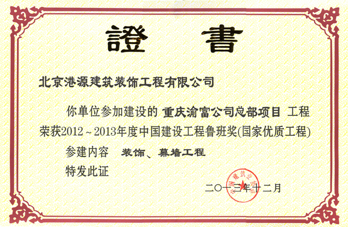 魯班獎——重慶渝富公司
