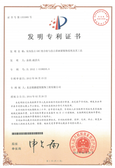 發(fā)明專(zhuān)利-室內(nèi)仿古GRC組合柱與仿古彩畫(huà)梁裝飾系統(tǒng)