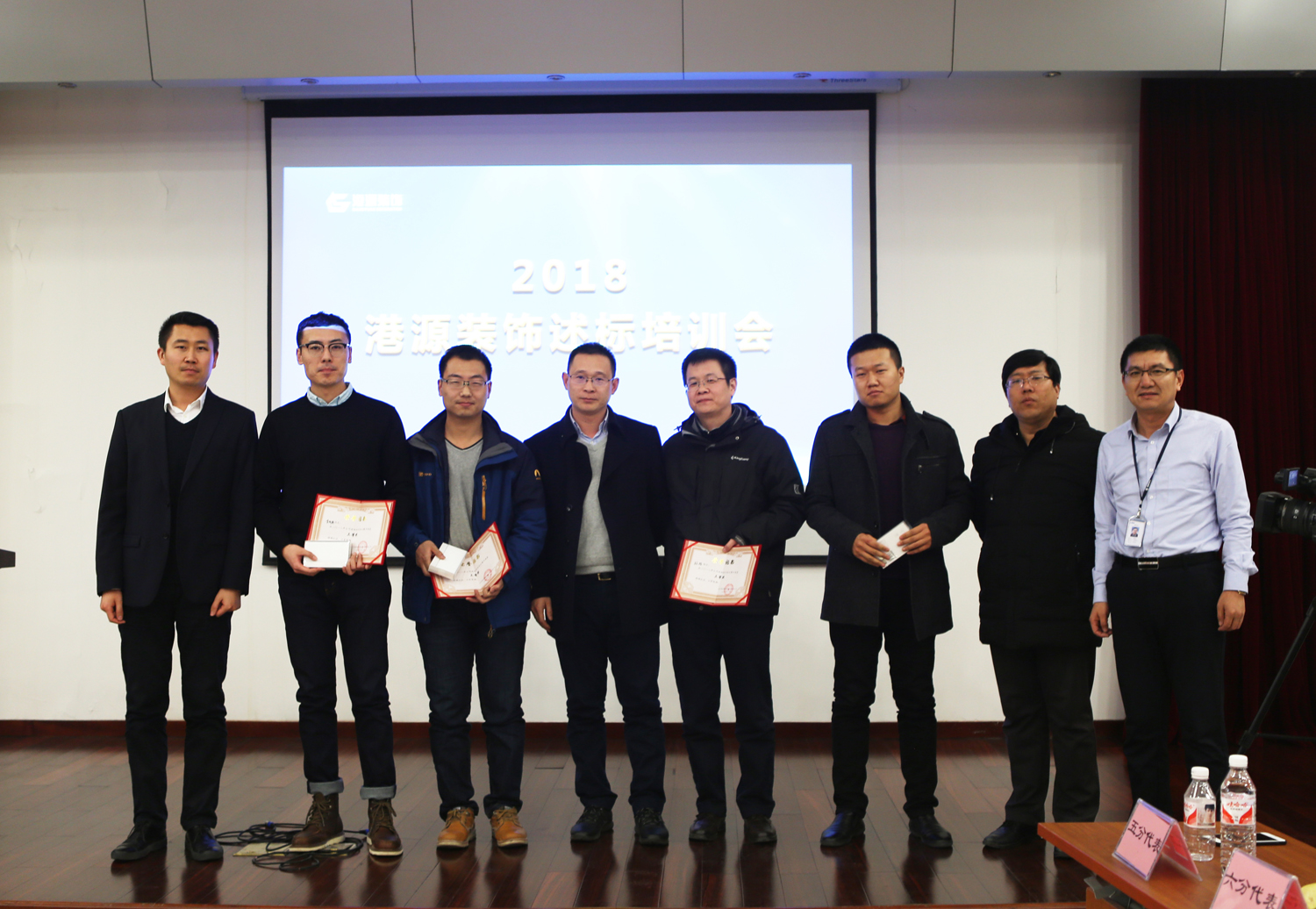 會議的第二天,議程進入述標比賽環(huán)節(jié)。各參賽隊伍不遺余力地將方案完美地展示出來,現(xiàn)場氣氛也被推向本次會議的最高峰。經(jīng)過激烈的述標角逐,技術(shù)研發(fā)中心蘇彥愛獲得了本次述標比賽的冠軍;焦利總代領(lǐng)的第六分公司“戰(zhàn)隊”獲得了“優(yōu)秀團隊獎”。公司向獲獎個人及團隊頒發(fā)了證書和獎品,旨在鼓勵港源裝飾不斷脫穎而出的述標新人才。