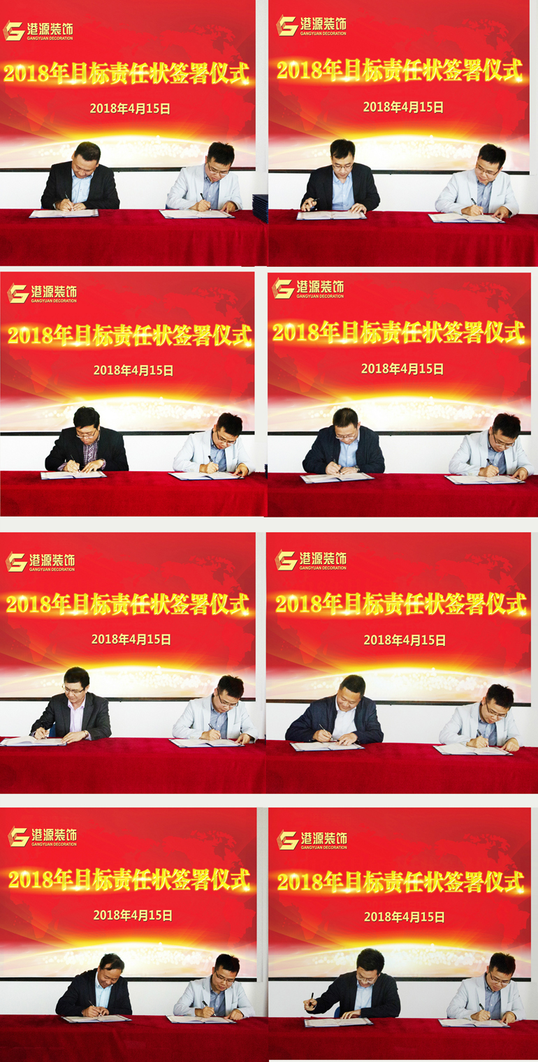 為全面落實(shí)公司年度戰(zhàn)略目標(biāo),強(qiáng)化績效和激勵(lì)機(jī)制,4月15日,港源裝飾各運(yùn)營分公司在會(huì)議上簽署了2018年度目標(biāo)責(zé)任狀,并明確地將年度目標(biāo)層層下達(dá),使“年初有計(jì)劃、年底有考核”的閉環(huán)管理模式真正實(shí)現(xiàn)落地!