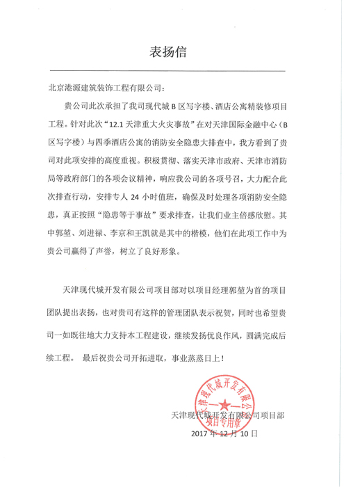 天津現(xiàn)代城項(xiàng)目表?yè)P(yáng)信