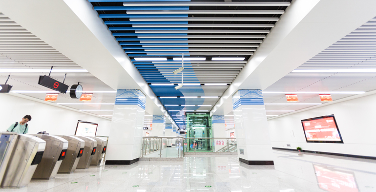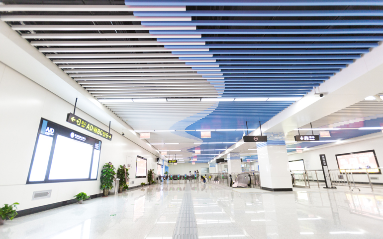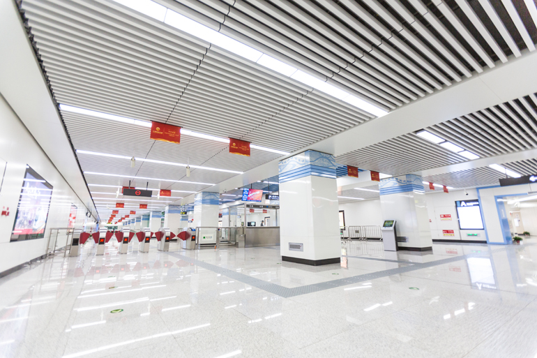 在施工過程中,港源裝飾綜合考慮站點內(nèi)的實用功能及藝術(shù)效果,將裝飾材料、施工工藝與總體設(shè)計原則有機結(jié)合,在既定時間內(nèi)為蘭州市民呈現(xiàn)出了一個清新雅致、底蘊深厚的蘭州軌道交通1號線。