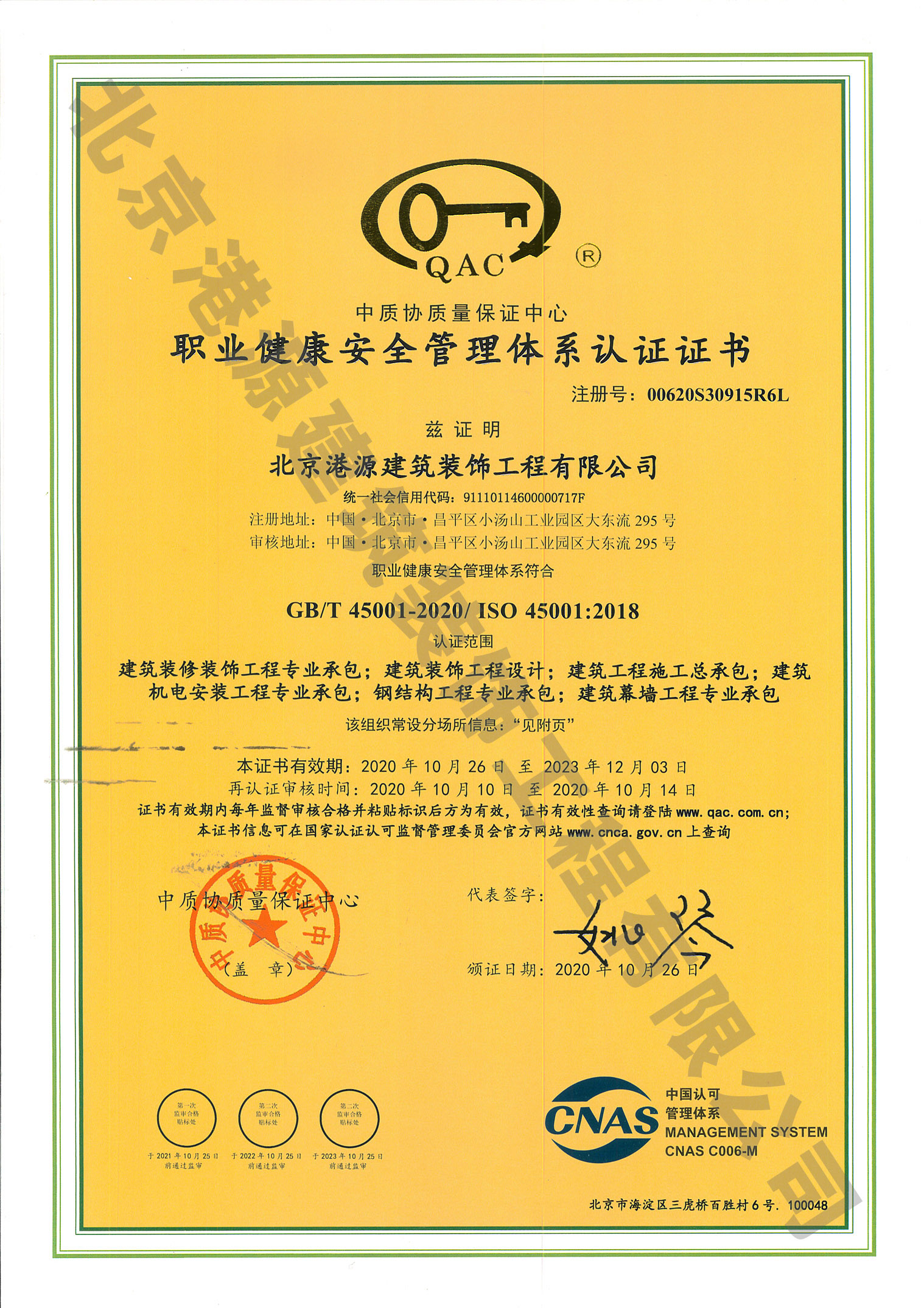 職業(yè)健康安全管理體系認證證書