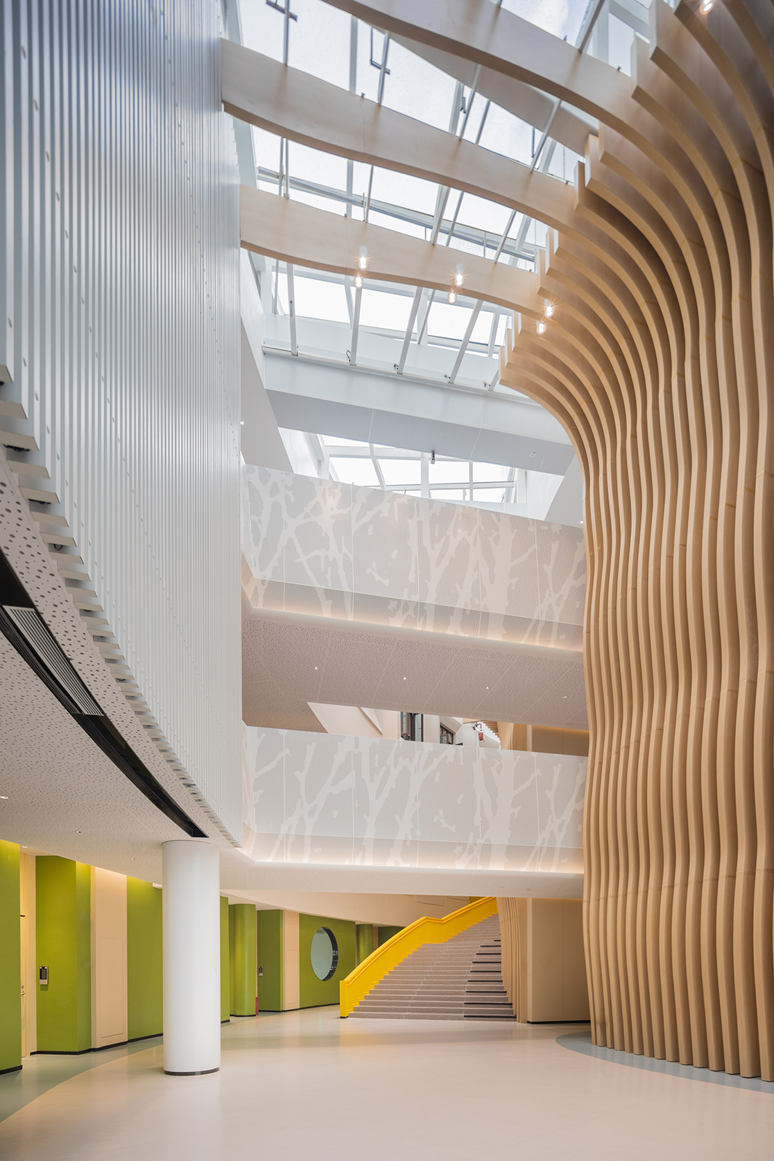 ▲ 中庭高達(dá)14米的“樹(shù)狀”異形鋁方通