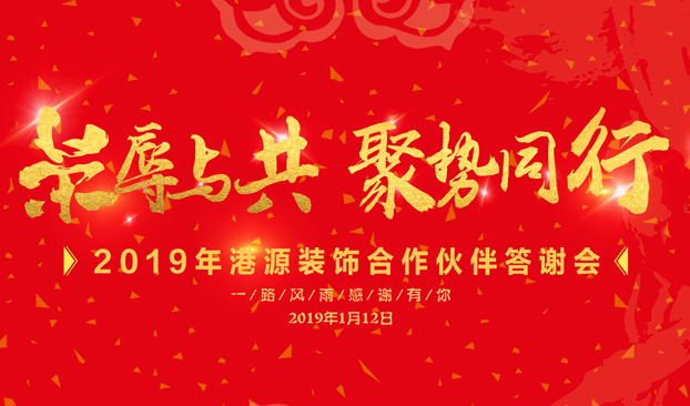 不忘感恩之心,不渝共贏之志! 1月12日, 榮辱與共,聚勢同行——2019年港源裝飾合作伙伴答謝會(huì)在北京隆重召開。港源裝飾董事長兼總